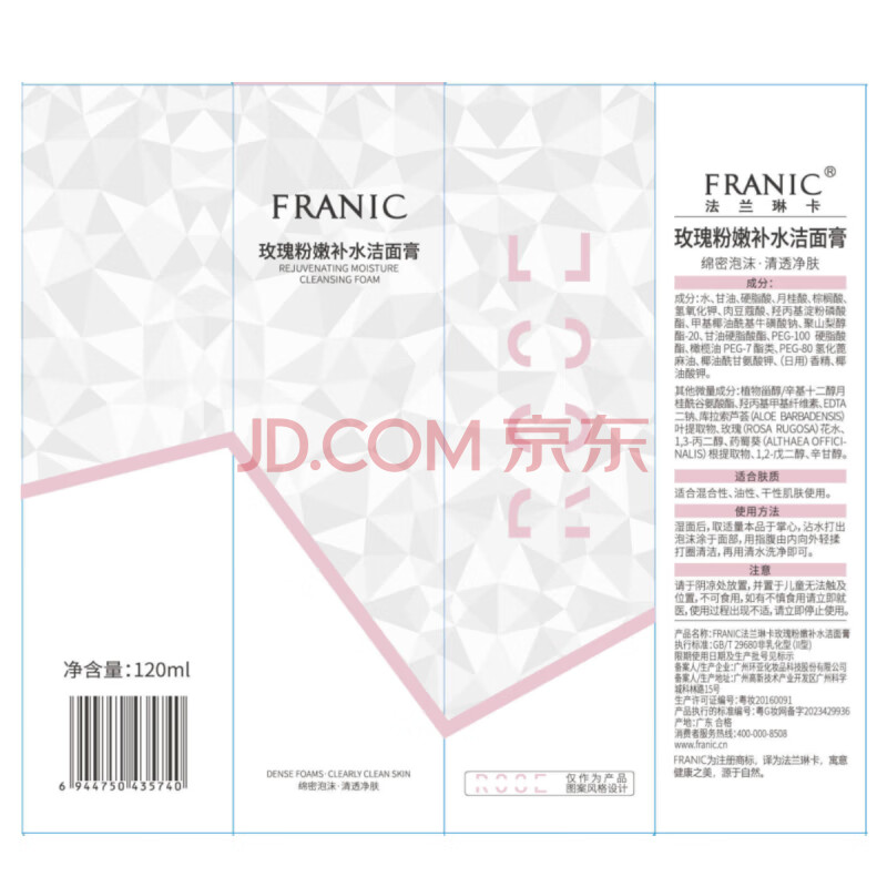商品相册:法兰琳卡玫瑰粉嫩补水洁面膏120ml温和深层清洁洁面乳洗面奶第