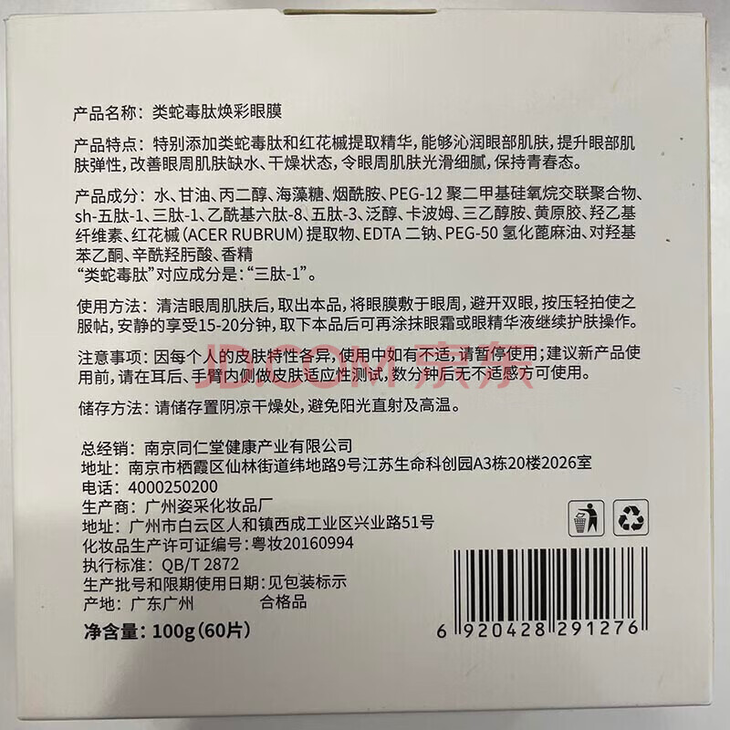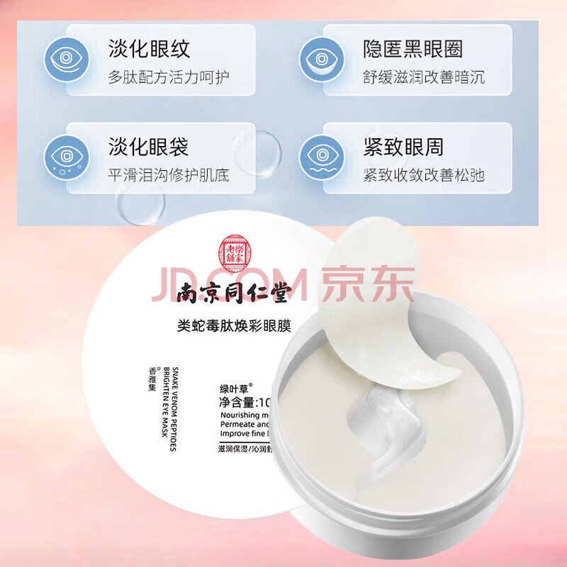 商品相册:南京同仁堂蛇毒眼膜贴眼贴淡化眼袋黑眼圈细纹补水保湿眼贴膜三盒装圣诞礼物第