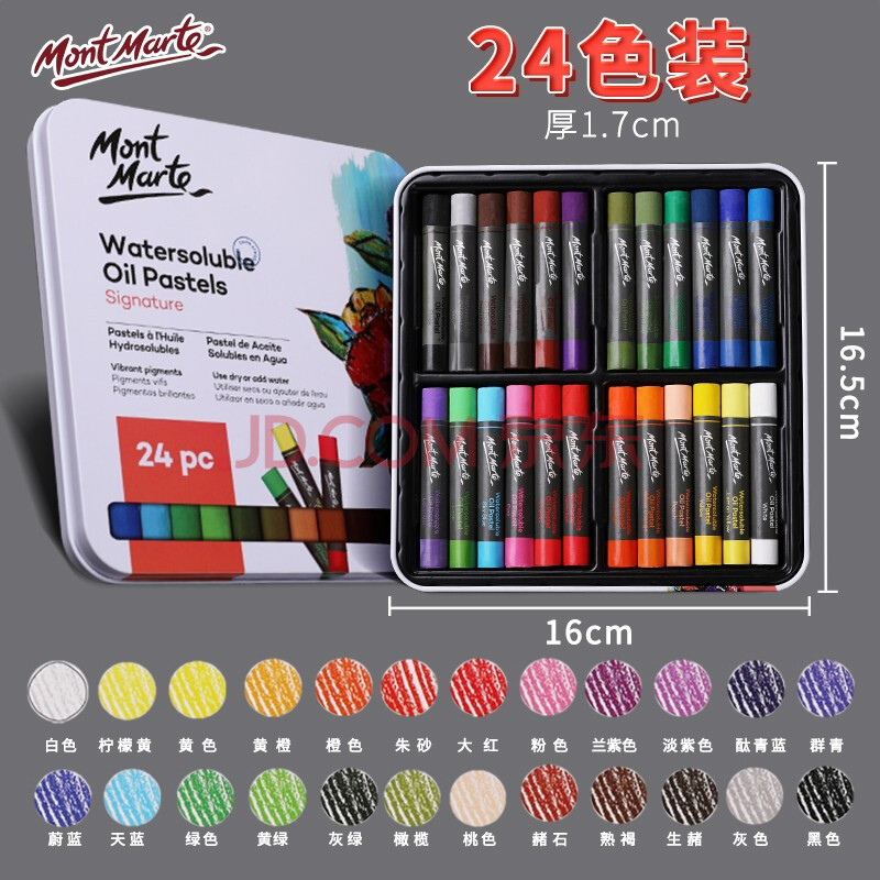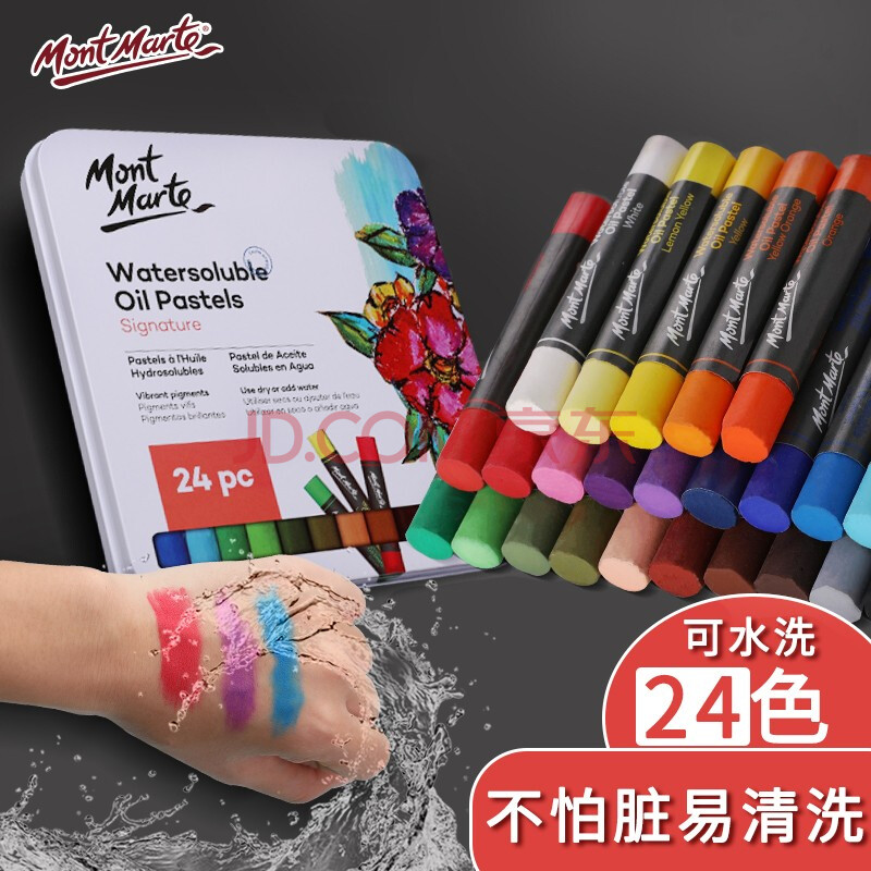 商品相册:【全网低价】蒙玛特(Mont Marte)油画棒24色 水溶性油画棒儿童绘画画笔涂鸦画画蜡笔套装 美术不脏手水洗铁盒装MMPT0027美术写生第
