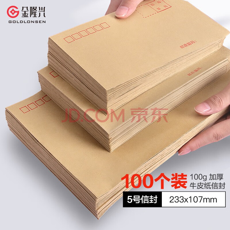 商品相册:金隆兴【全网低价】 5号牛皮纸信封邮局标准信封袋发票收据文件袋资料袋信纸发票工资袋信封袋100个/包第