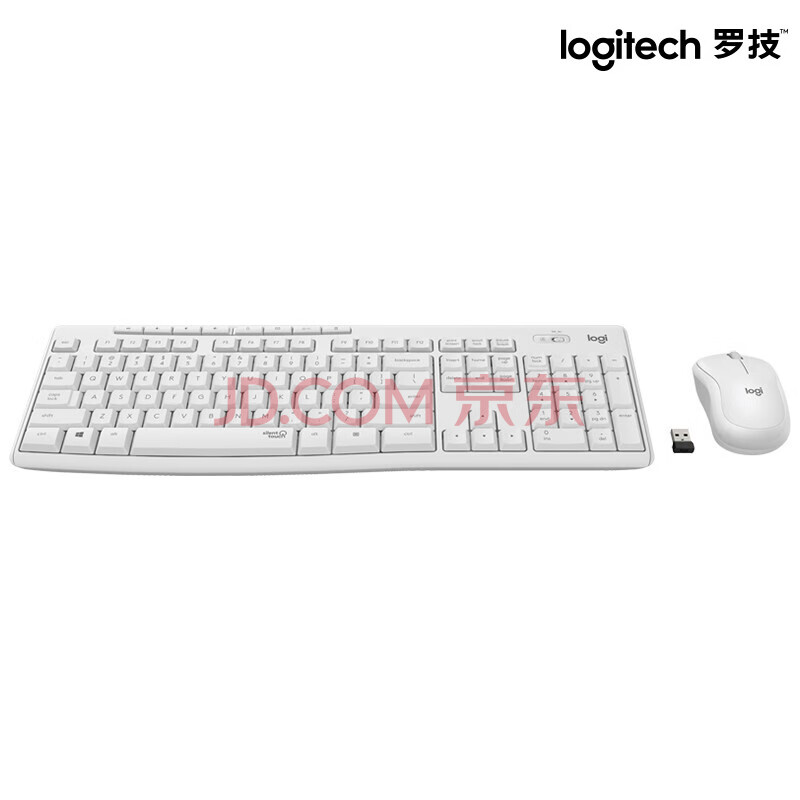 商品相册:罗技(Logitech)MK295 无线键鼠套装 办公轻音键鼠套装 全尺寸 带无线2.4G接收器 白色第