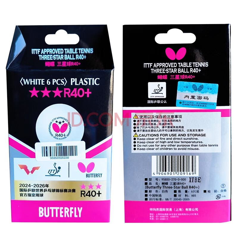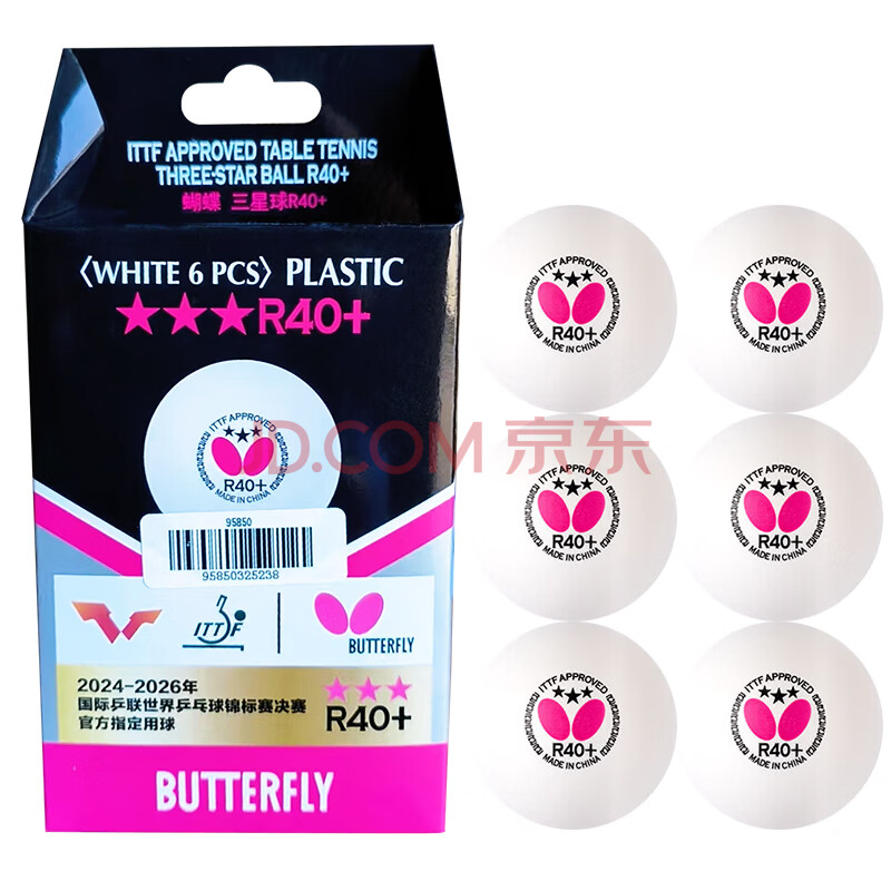 商品相册:蝴蝶三星级乒乓球6只装专业大赛比赛用球R40+白色第
