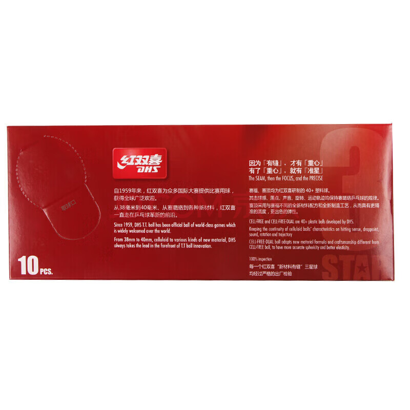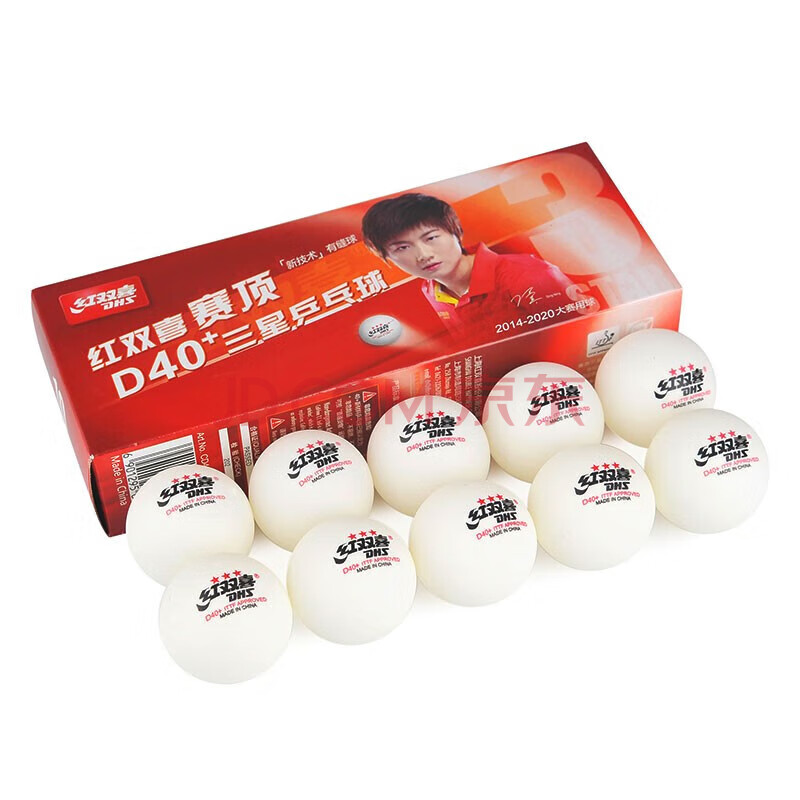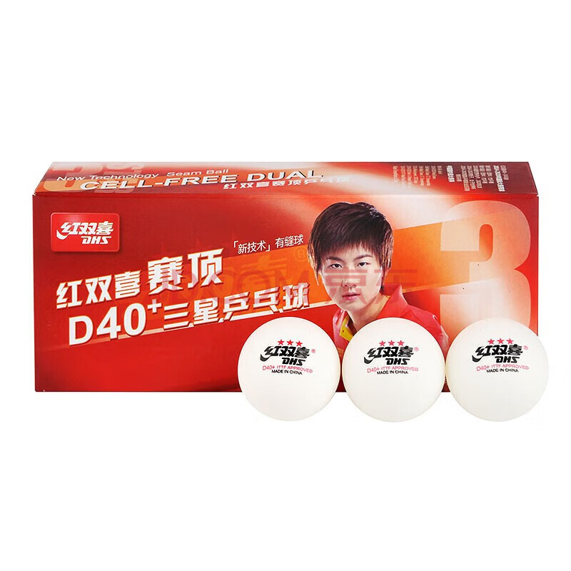 商品相册:红双喜DHS赛顶三星乒乓球3星ABS新材料40+白色10只装第1张/共9