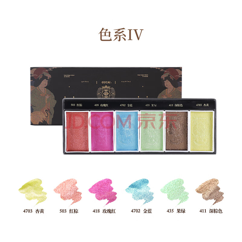 商品相册:鲁本斯6色珠光国画颜料套装 古彩固体水彩水粉颜料 儿童中国水墨画工具色系Ⅳ-0122004004第