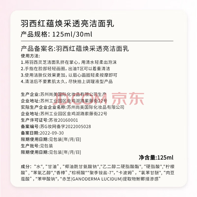 商品相册:羽西灵芝洁面乳125ml氨基酸清洁提亮洗面奶护肤生日礼物送女友第