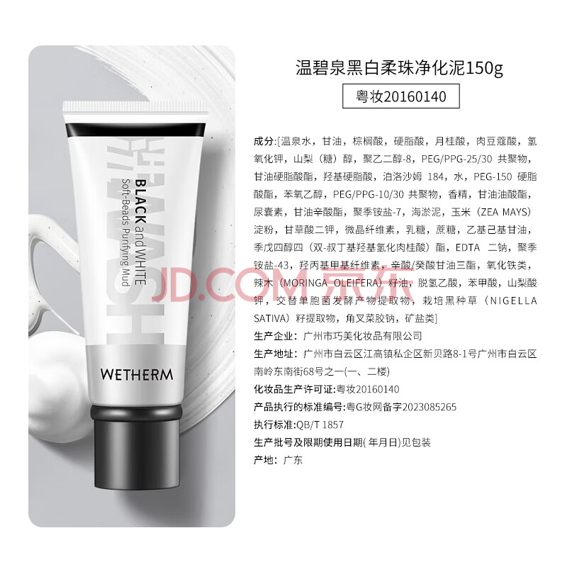 商品相册:温碧泉洗面奶洁面乳黑白柔珠净化泥150g 护肤化妆品 温和不紧绷深层清洁第