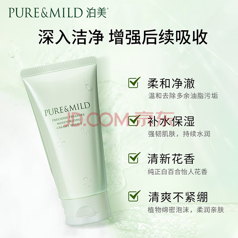商品相册:泊美鲜纯珍萃保湿滋润洗面奶洁面乳120g*2深保湿补水送女友礼物第