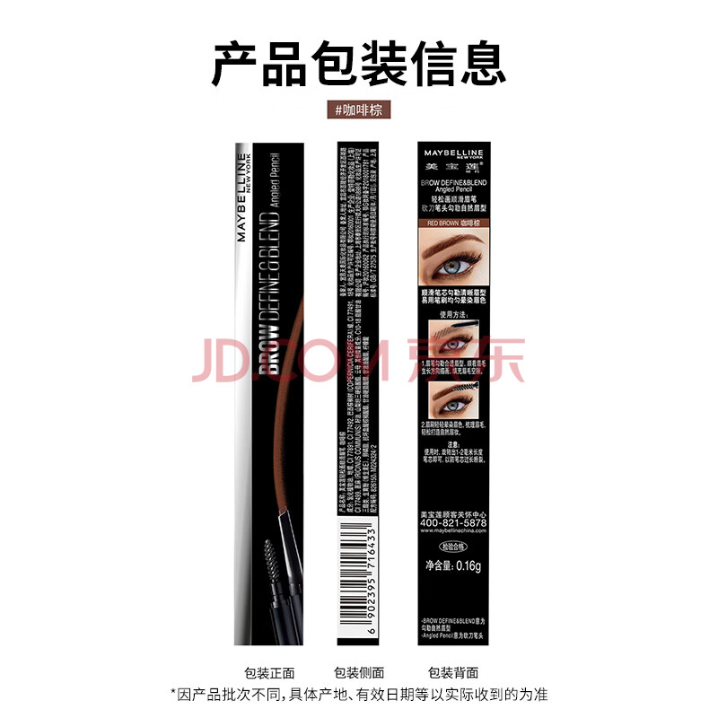 商品相册:美宝莲轻松画顺滑眉笔不晕染野生眉自然咖啡棕0.16g 生日礼物女第