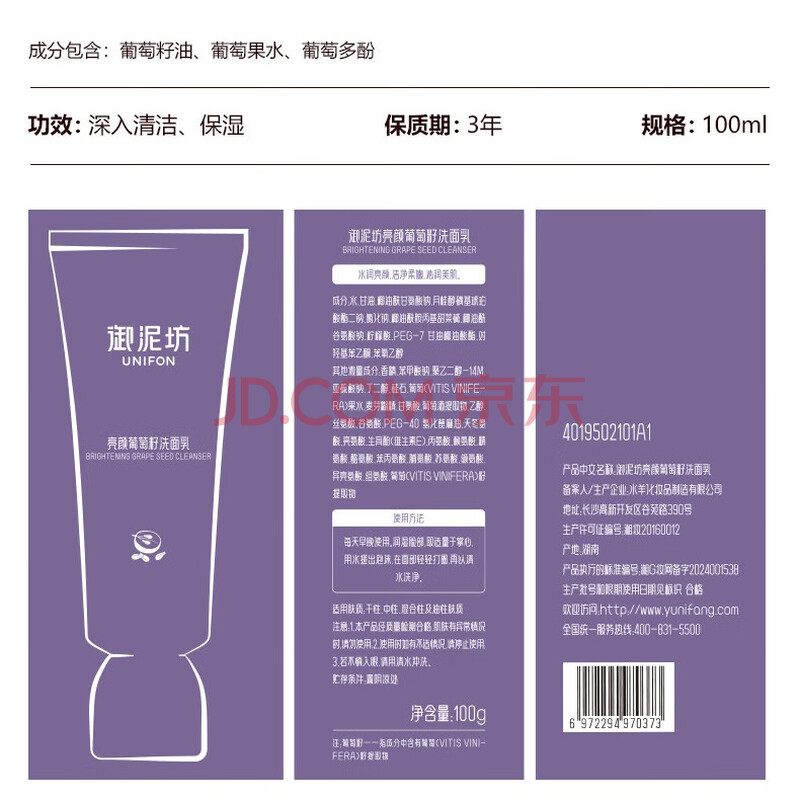 商品相册:御泥坊 葡萄籽洁面乳 清洁补水保湿洗面奶100ml 氨基酸洁面第