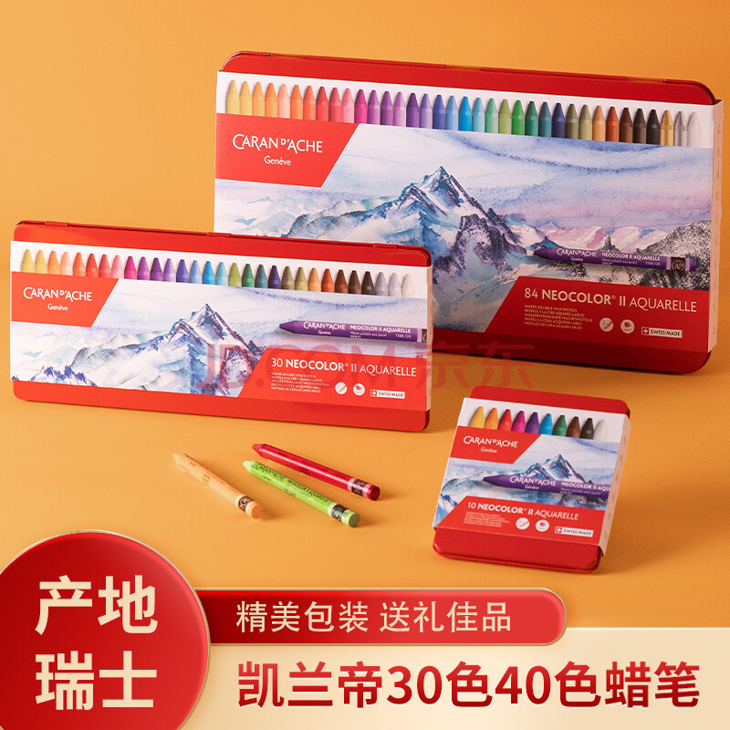 商品相册:凯兰帝(CARAN d'ACHE)瑞士卡达蜡笔NEOCOLORII水溶性40色专业级重彩油画棒蜡笔7500340美育工具第