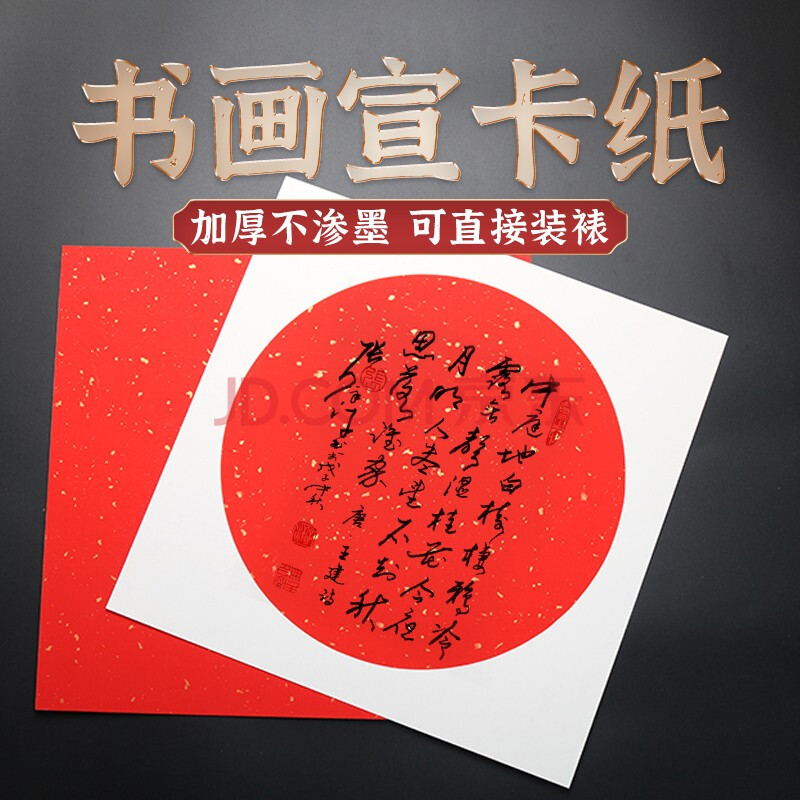 商品相册:一海堂 文化 宣纸 卡纸文房四宝国画书法绘画硬卡万年红方形镜片纸 圆内万年红洒金外白-半生熟 33*33cm*10张第