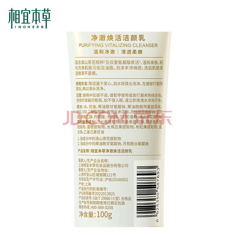 商品相册:相宜本草山茶花净澈焕活洁颜乳100g 氨基酸洗面奶温和不紧绷第