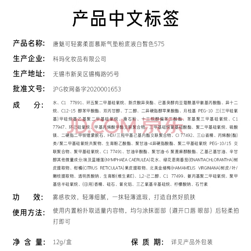 商品相册:TOM MARK慕斯遮瑕气垫bb霜保湿粉底液干皮持久 白皙色12g第