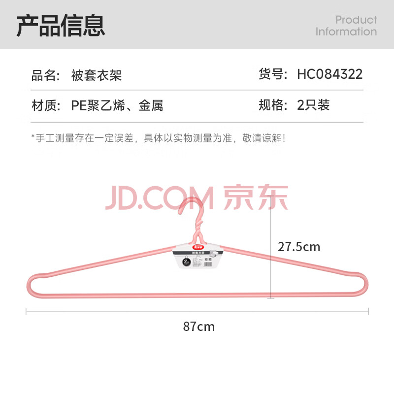 商品相册:美丽雅 大衣架晒被子床单特大加粗家用大号凉被单晾被套的长衣架87cm2个第