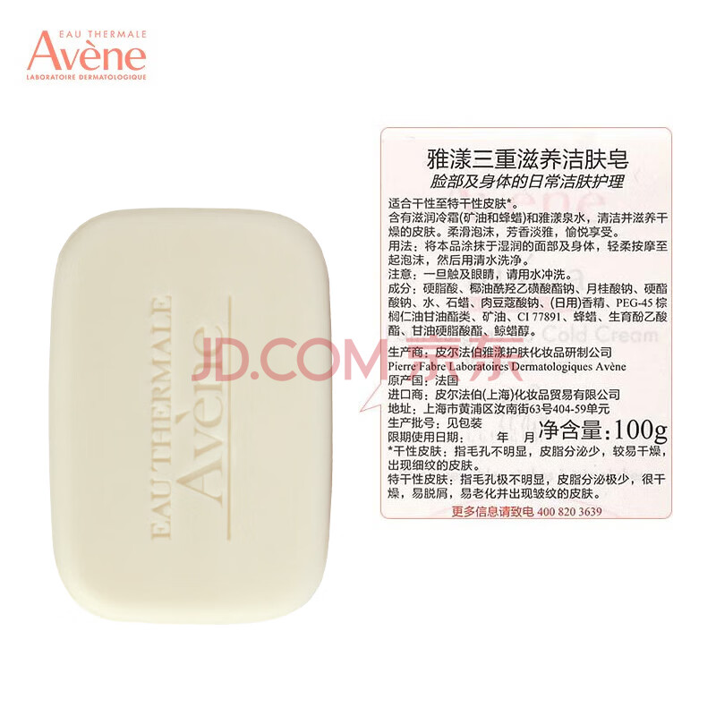 商品相册:雅漾(Avene)三重滋润洁肤皂100g 温和清洁 控油敏感肌肤 洁面皂香皂洗面奶第