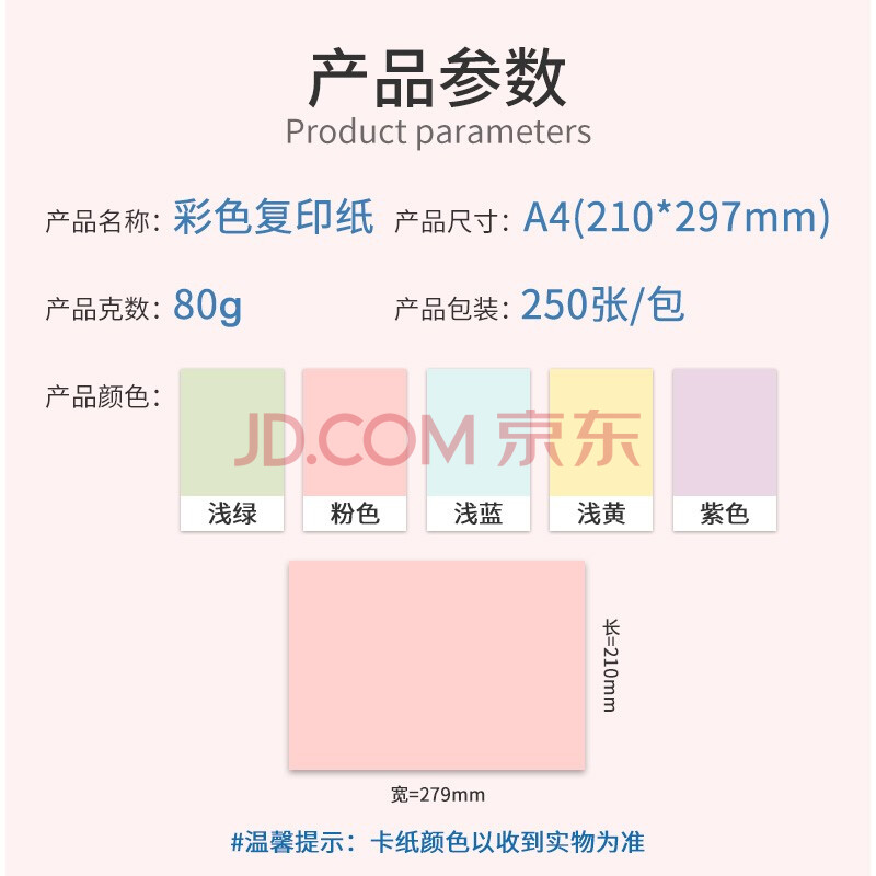 商品相册:得印 A4 80g 5浅色混装复印纸 彩色打印纸 幼儿园儿童手工折纸卡纸剪纸彩纸 250张/包第
