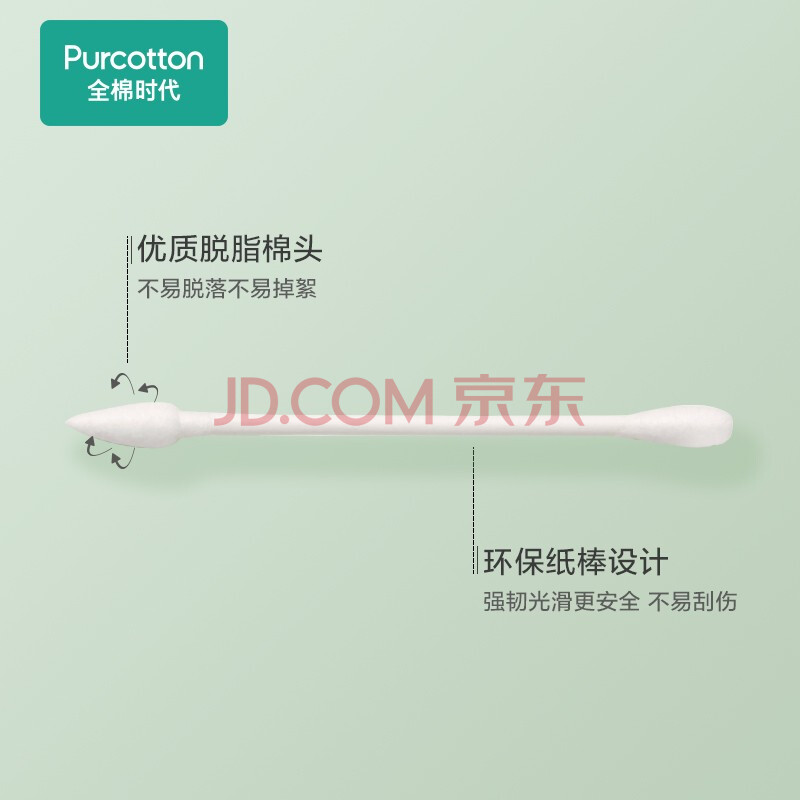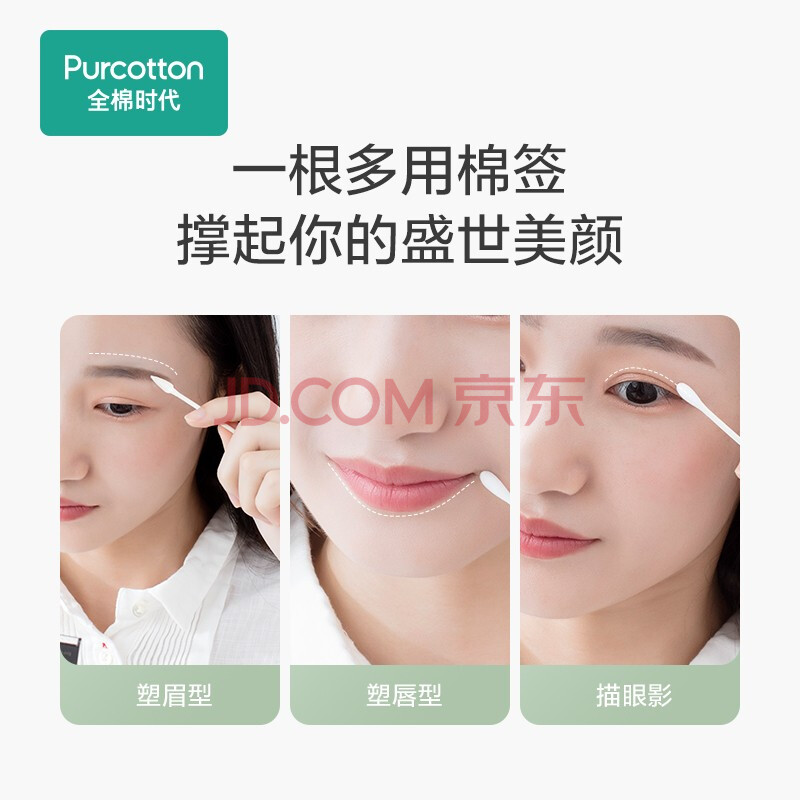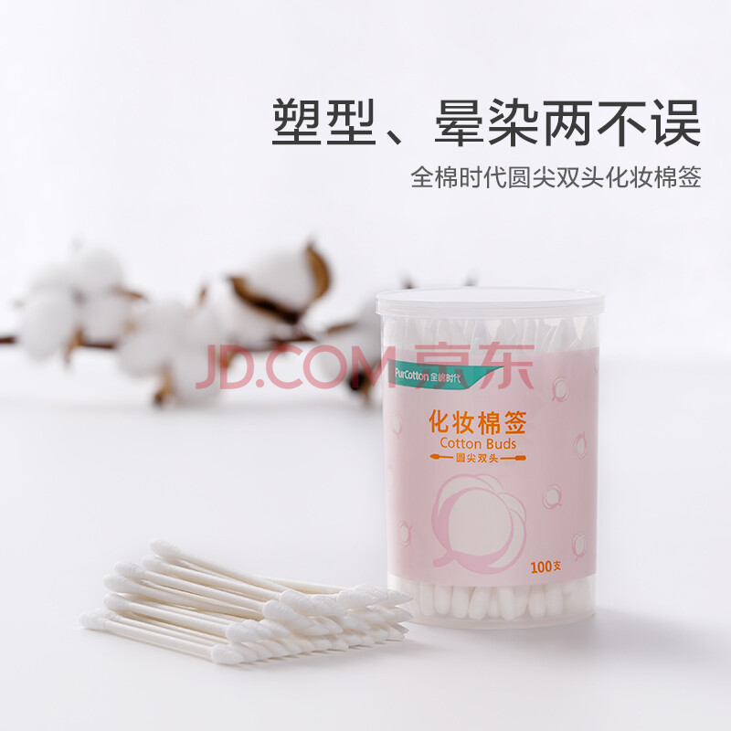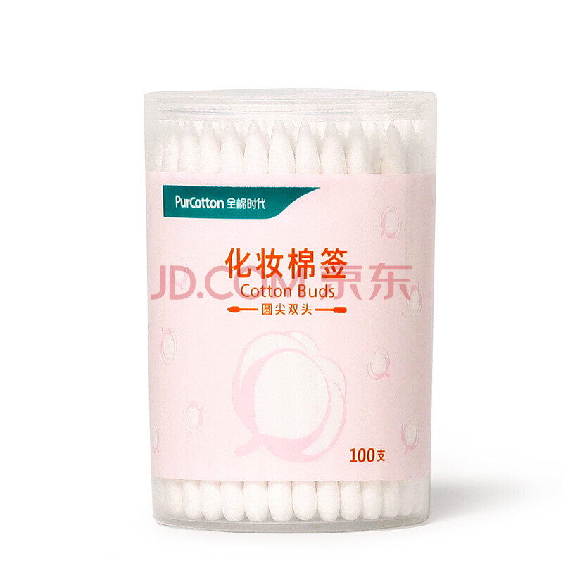 商品相册:全棉时代双头化妆棉签美容细轴纯棉花清洁棒圆筒便携塑盒装100支/1盒第