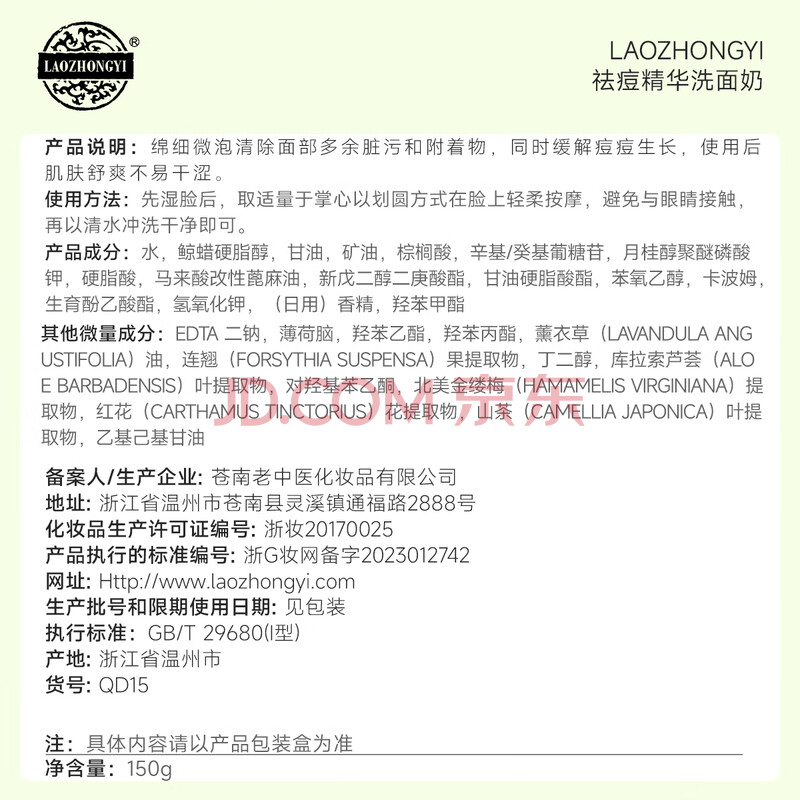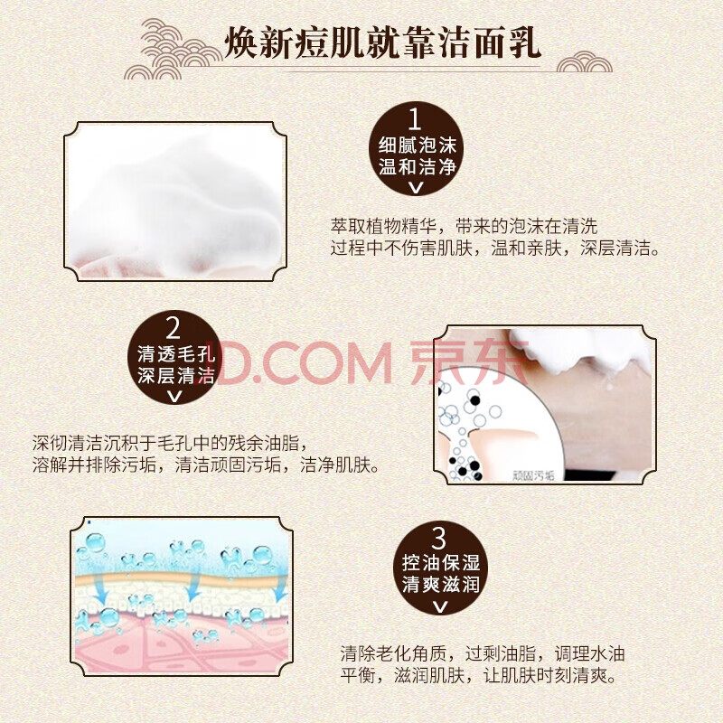 商品相册:老中医祛痘精华洗面奶150g 男女士去黑头粉刺深层清洁毛孔青春痘洁面乳第