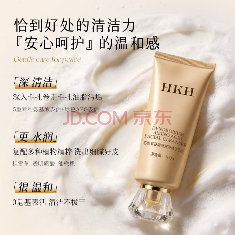 商品相册:HKH石斛氨基酸洗面奶深层清洁毛孔保湿温和洁面乳男女士生日礼物第