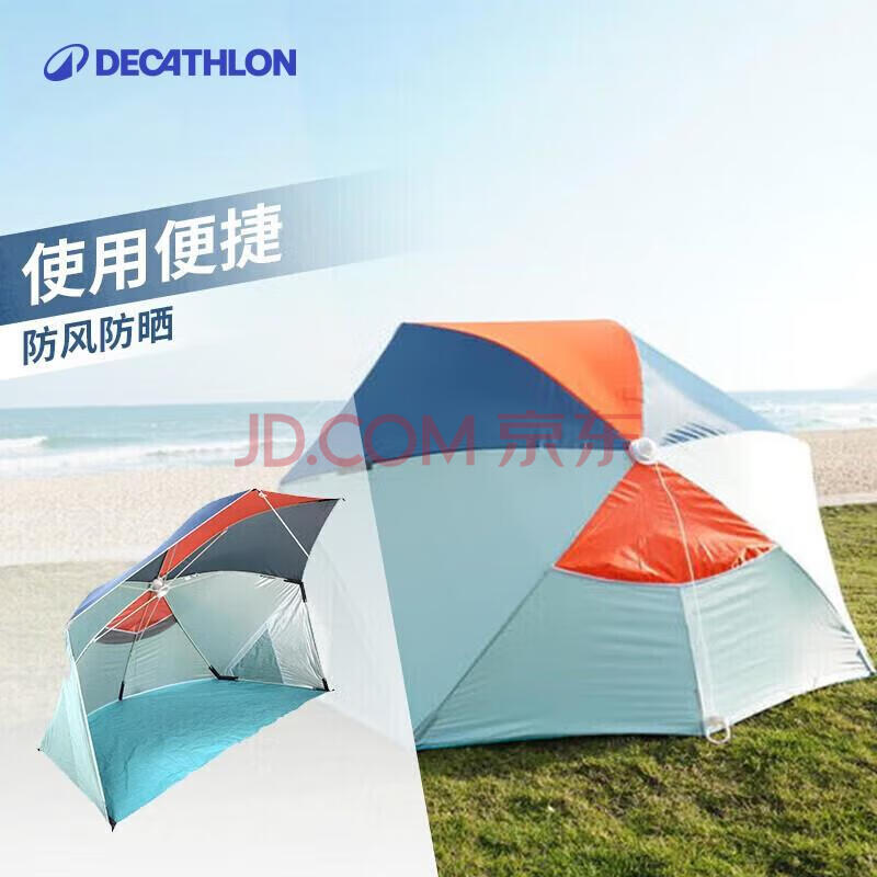 商品相册:迪卡侬防晒沙滩帐篷小型简易便携遮阳海边度假钓鱼青砖色遮阳伞-4104414第
