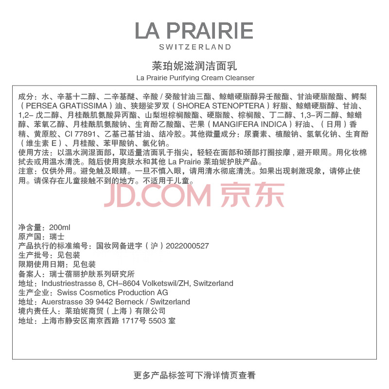 商品相册:莱珀妮(La Prairie)滋润洁面乳200ml洗面奶护肤品礼盒清洁毛孔保湿生日礼物送女友第1张/共3