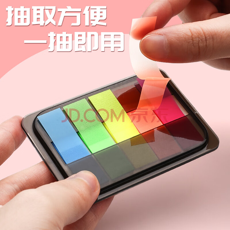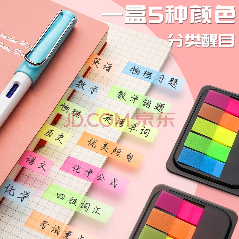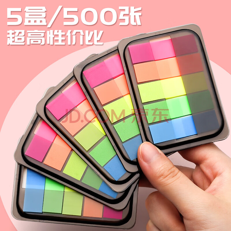 商品相册:金值500张5色荧光膜便利贴便签索引标签贴纸透明防水彩色记事贴条指示标签书签贴N次贴44*12mm开学必备第