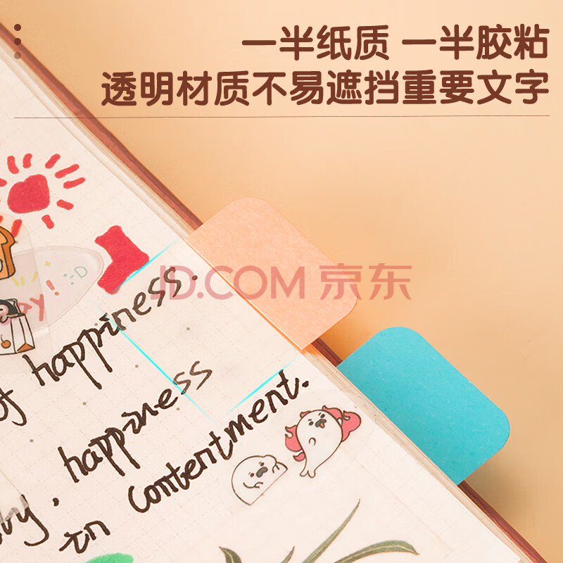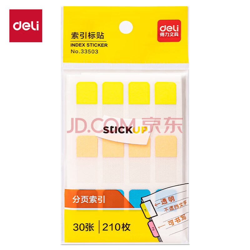 商品相册:得力(deli)210枚多规格索引标签贴纸 分类荧光膜便利贴口取纸半透明贴条33503第