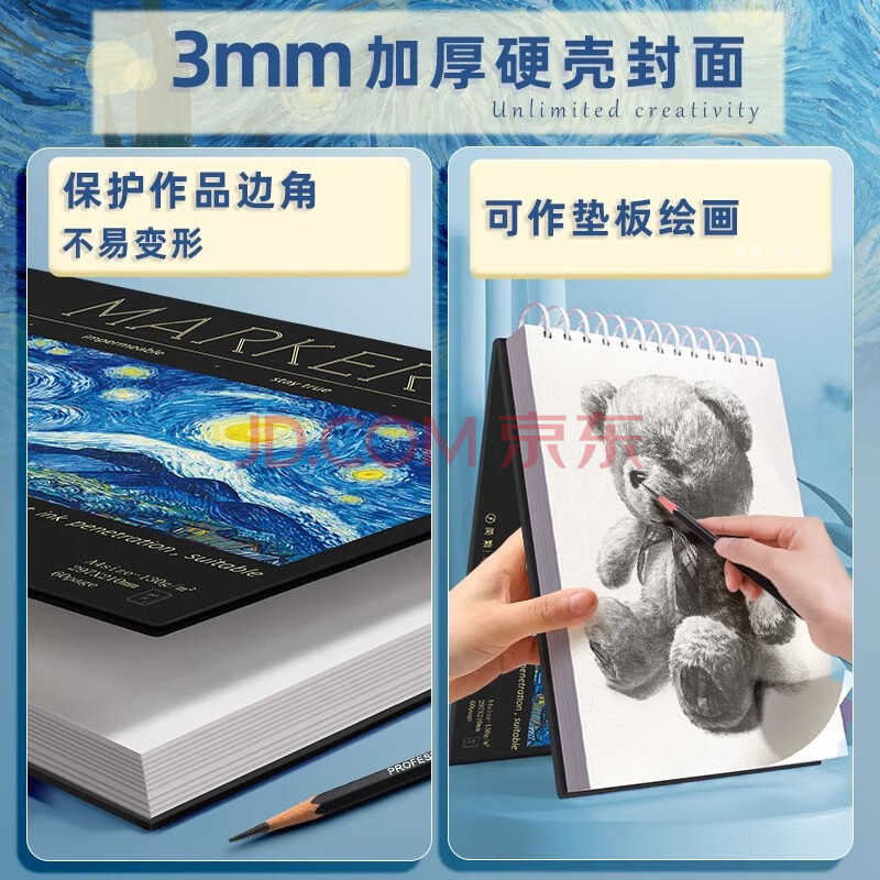 商品相册:金值A4星空马克本60张 马克笔专用绘画本硬壳线圈110G专用纸漫画专业美术素描手绘画画本涂鸦图画本子第