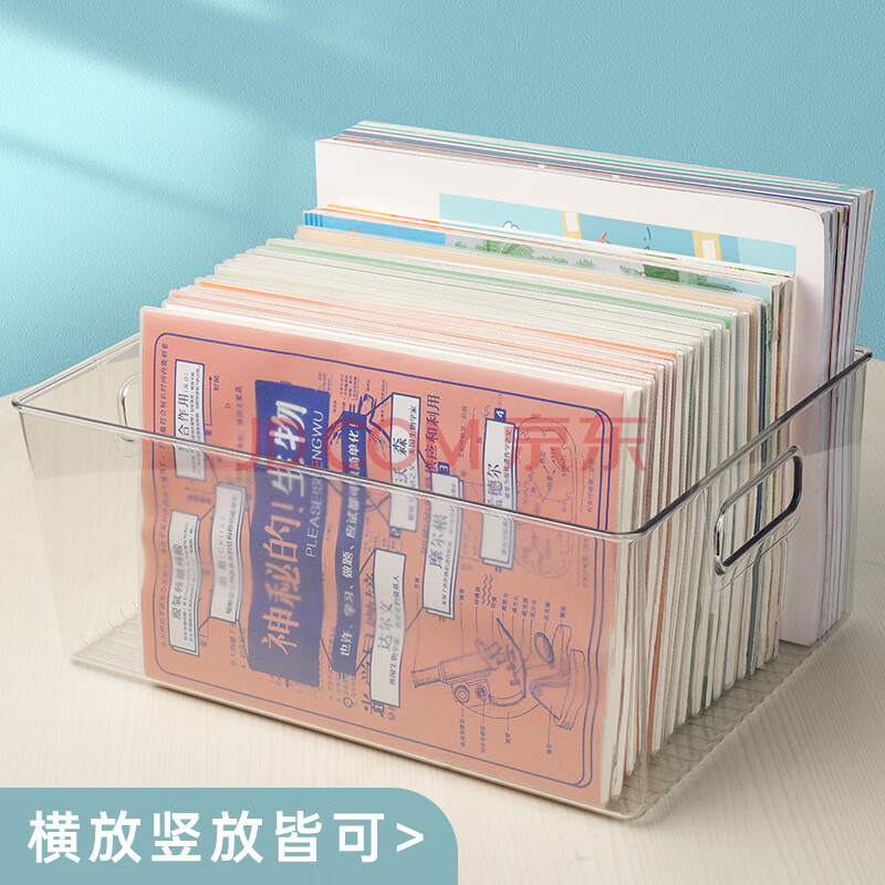 商品相册:递乐 书箱透明书籍文件框绘本书籍收纳箱整理箱玩具收纳盒桌面储物箱 学生书桌装书盒子 7113透明大号第