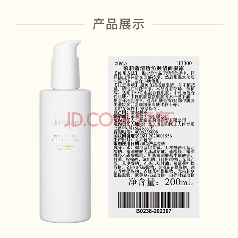 商品相册:茱莉蔻(Jurlique)清透沁颜洁面凝露200ML 温和深层清洁洗面奶面部护肤 生日礼物第