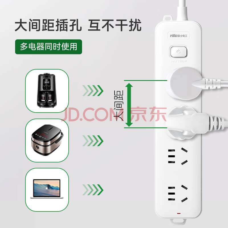 商品相册:NVC雷士电工 总控 2位1.2米插线板插排插座排插插板拖线板接线板 EP3211第