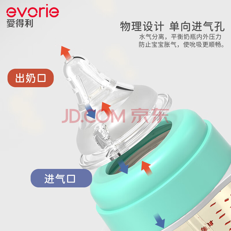 商品相册:爱得利(evorie) 婴儿奶瓶6个月以上 宽口径带手柄带重力球PPSU奶瓶 240ml绿第