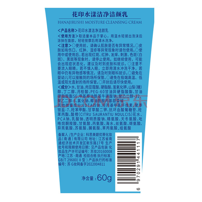 商品相册:花印水漾洁净洗面奶60g 洁面温和清洁洗面奶男女士控油第