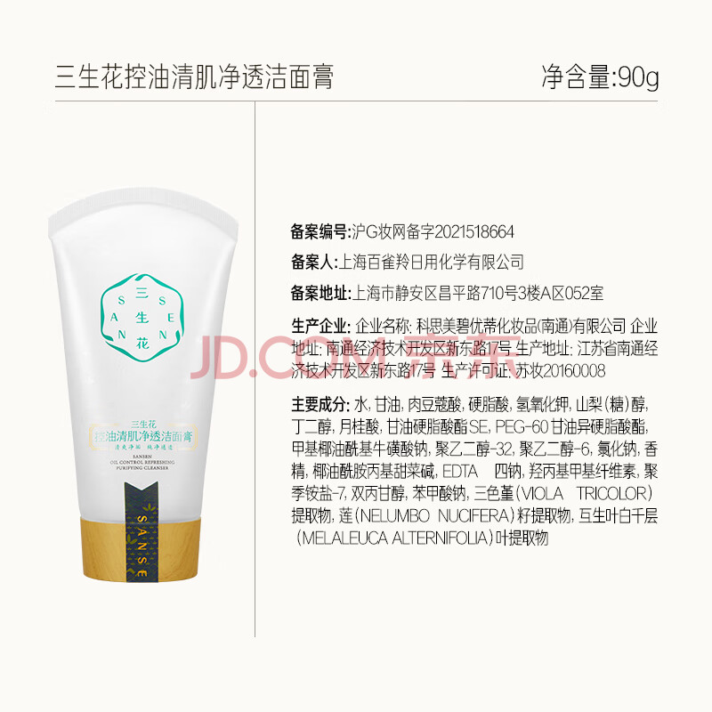 商品相册:三生花百雀羚出品洗面奶90g控油清肌洁面乳油皮男女控油 买一送一第