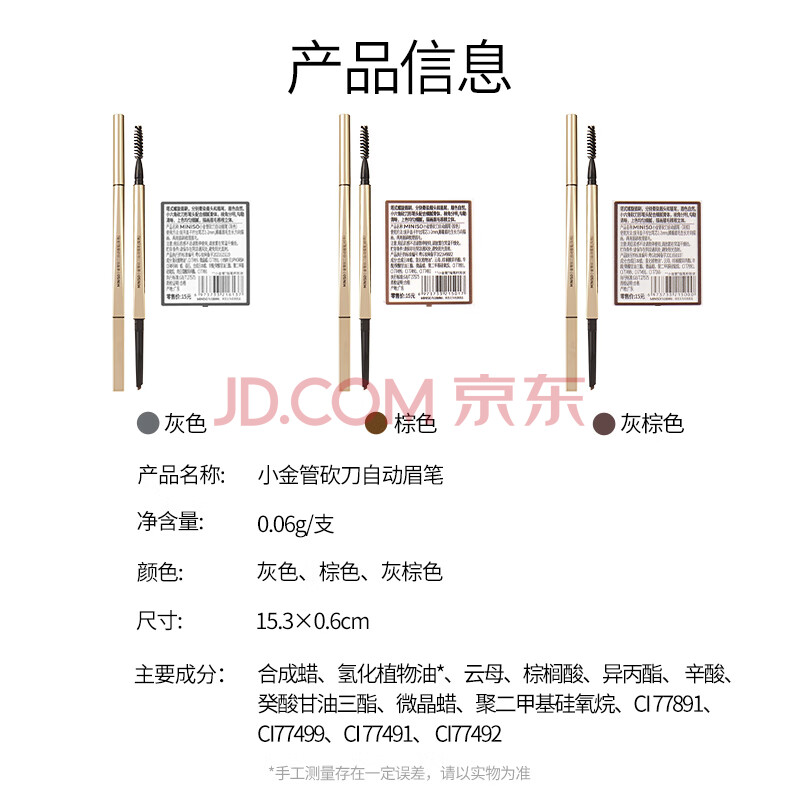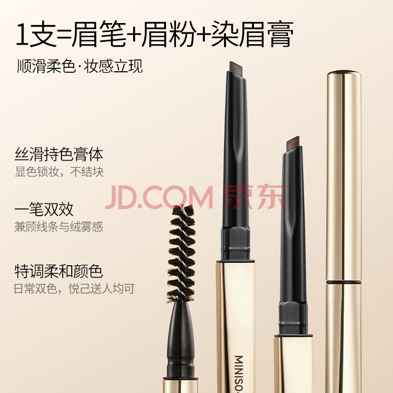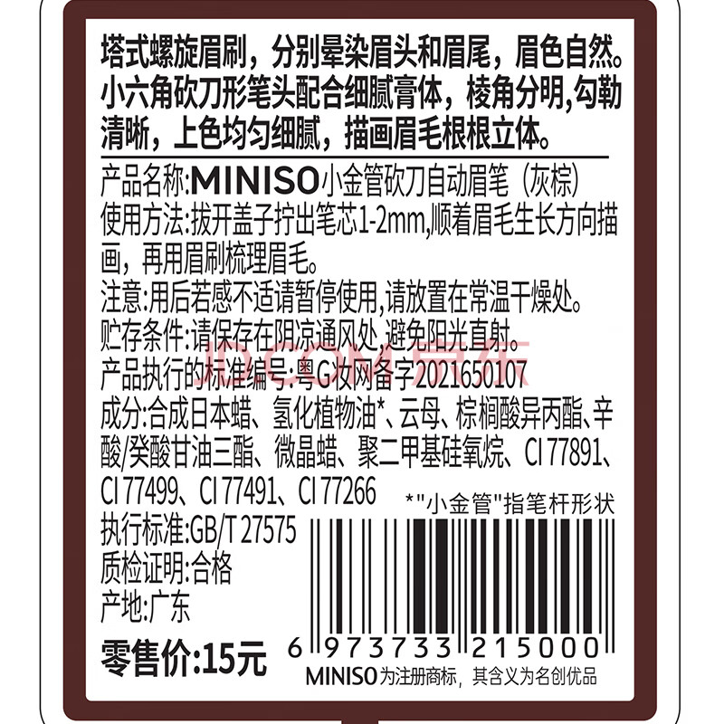 商品相册:名创优品(MINISO)小金管自动眉笔防水防汗不掉色眉刷笔持久防水 灰棕1支装 第