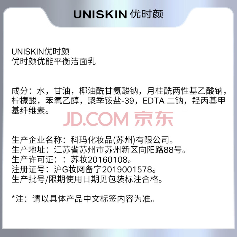 商品相册:优时颜(UNISKIN)优能平衡洁面乳洗面奶100g氨基酸温和不紧绷生日纪念日礼物第