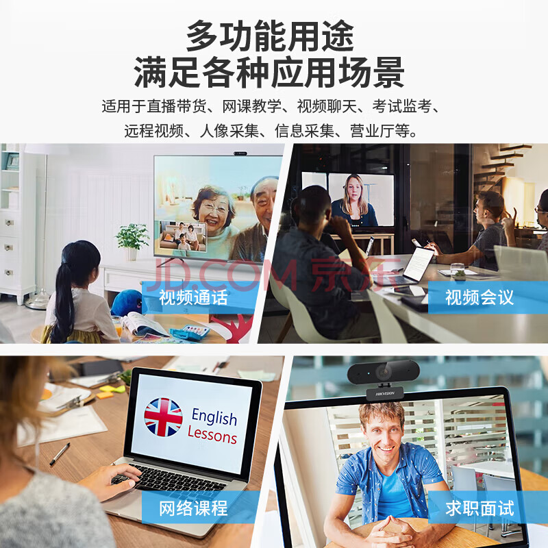 商品相册:HIKVISION海康威视电脑摄像头直播2K高清带麦克风扬声器USB外接笔记本电脑台式机网课视频会议直播带货E14S第