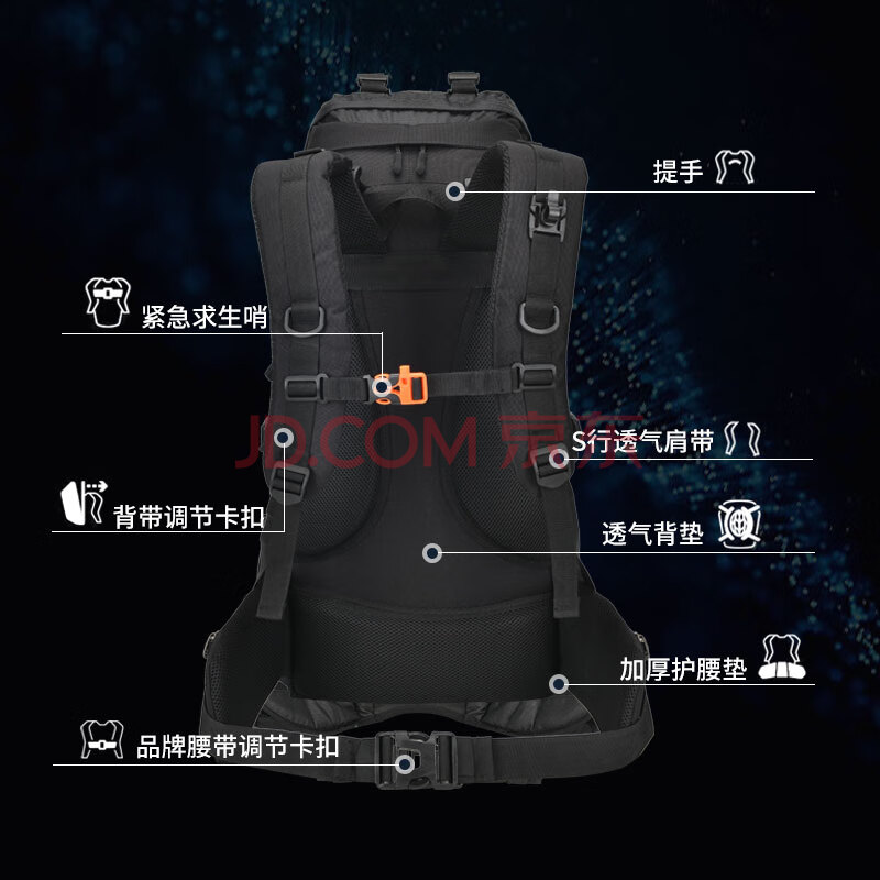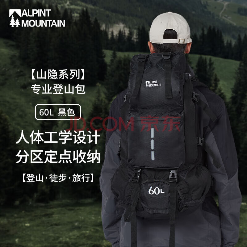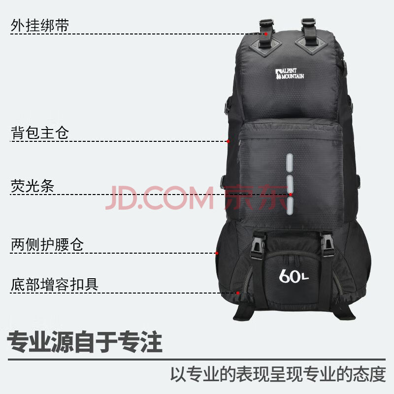 商品相册:ALPINT MOUNTAIN埃尔蒙特大容量双肩包60L登山包背包男款旅行包女士专业户外徒步第