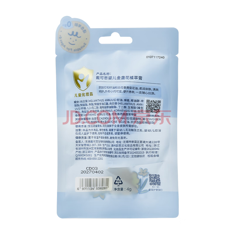 商品相册:戴·可·思婴幼金盏花植萃膏 清凉舒缓 温和配方缓解蚊虫叮咬包包4g第