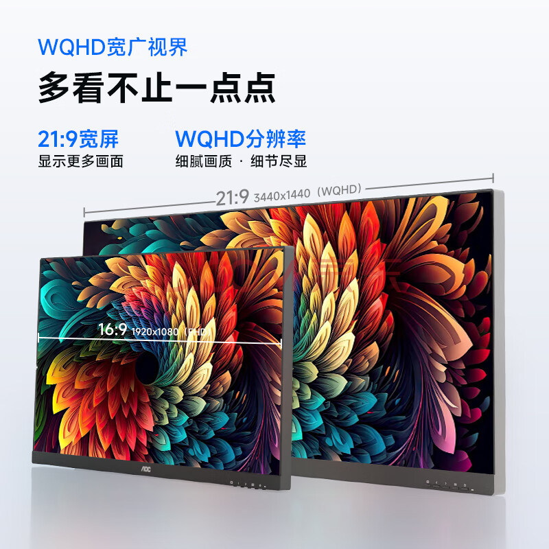 商品相册:AOC显示器 电脑显示屏幕 34英寸带鱼屏 升降旋转 全能商用办公学习护眼低蓝光 台式拓展笔记本扩展屏第