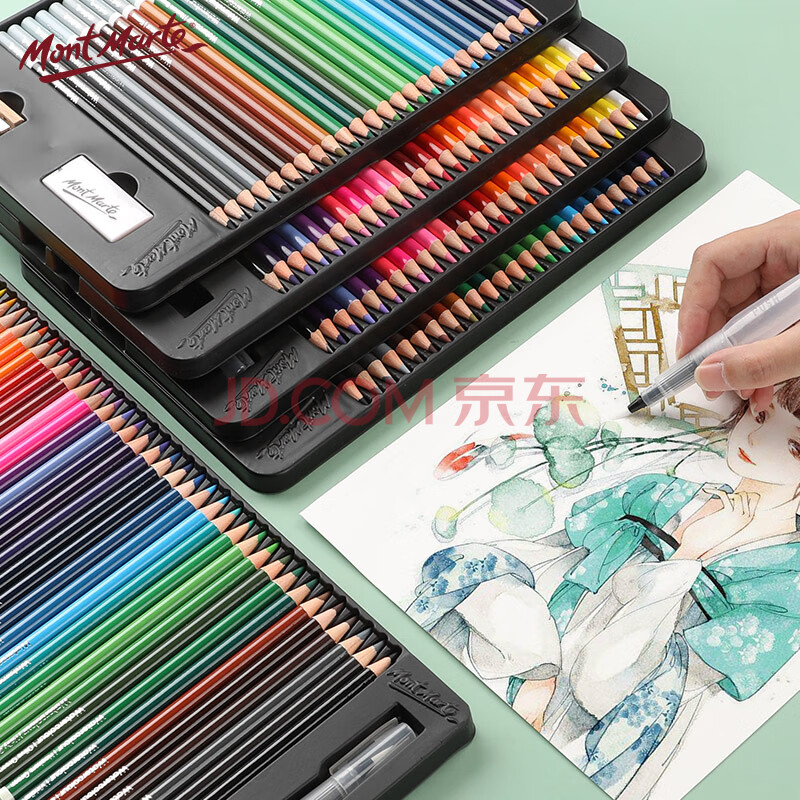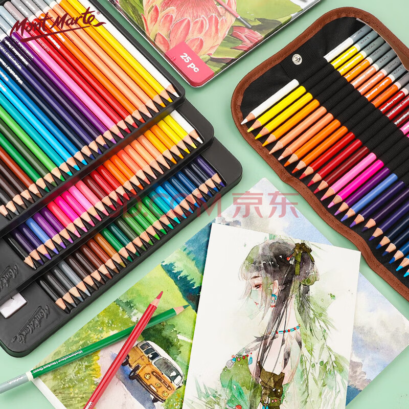 商品相册:蒙玛特(MontMarte)彩铅48色水性彩色铅笔铁盒绘画套装美术设计班级手绘(配笔帘彩铅纸)彩铅笔套装V第