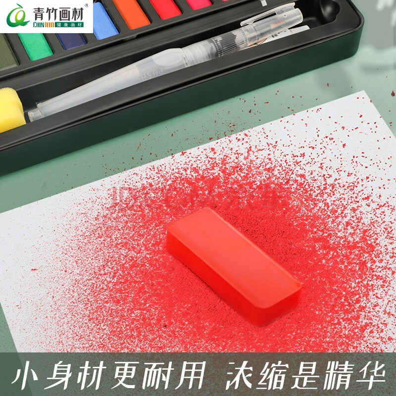 商品相册:青竹画材(CHINJOO)固体水彩颜料套装36色26件套 初学者绘画套装学生画笔美术用品 毕业礼物美术写生【全网低价】第