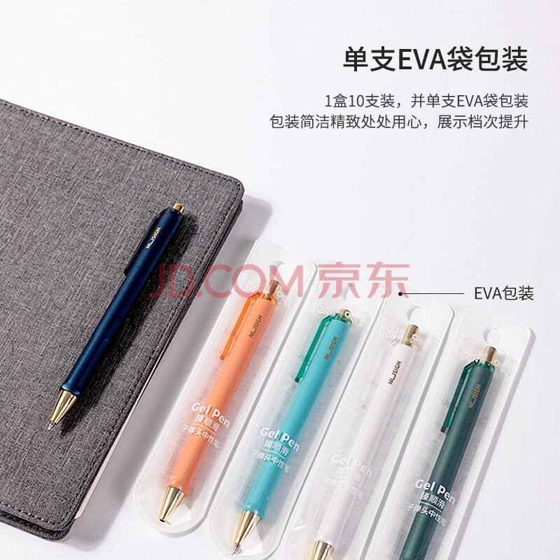 商品相册:纽赛磨砂光感按动中性笔黑笔 进口油墨精工笔头办公 10支NS557【热门商品】得力旗下高端品牌第