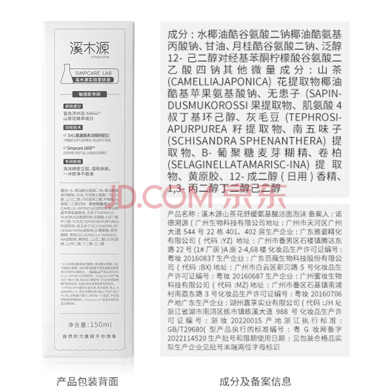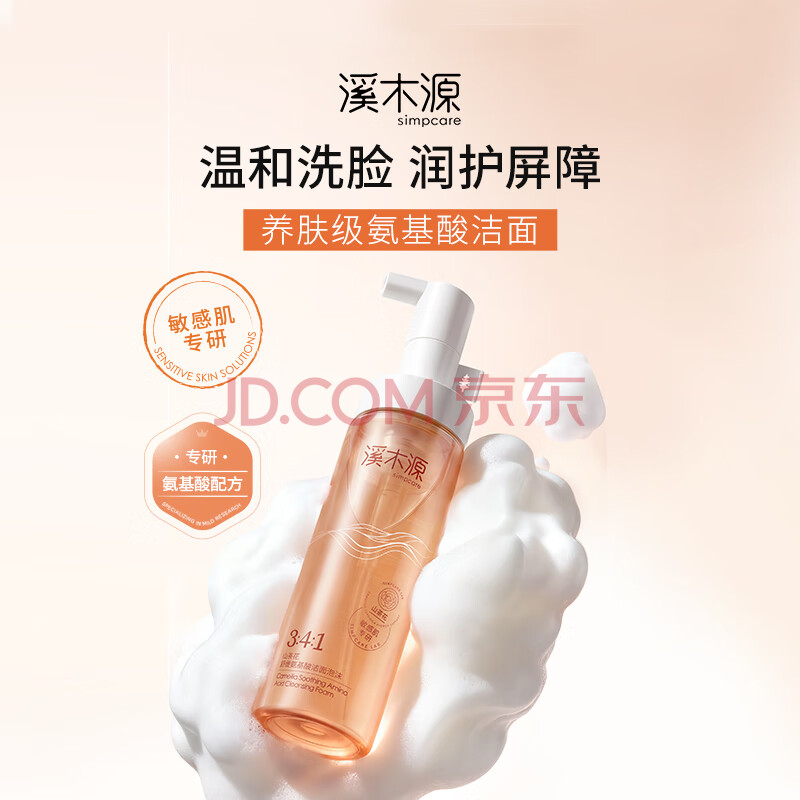 商品相册:溪木源山茶花洁面泡沫氨基酸洗面奶两支装温和清洁敏感肌护肤生日礼物女第