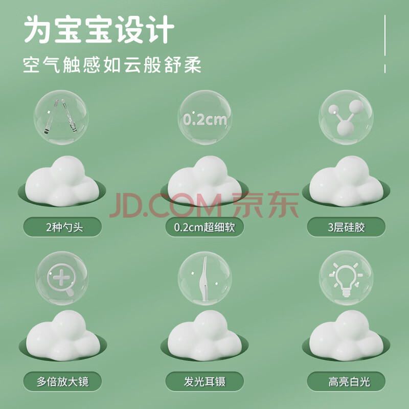 商品相册:易简(yijan)儿童挖耳勺掏耳朵神器婴儿发光掏耳勺新生儿宝宝扣耳屎镊子套装第