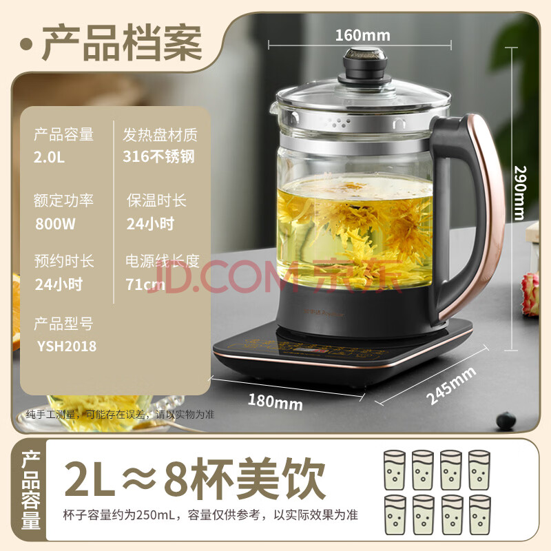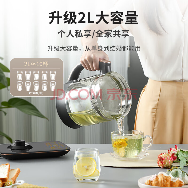 商品相册:荣事达(Royalstar)养生壶 2L大容量煮茶壶烧水壶电热水壶家用办公保温一体316不锈钢恒温壶玻璃花茶壶煮茶器YSH2018第