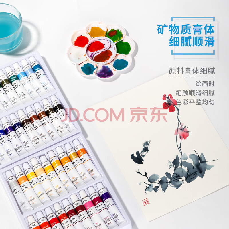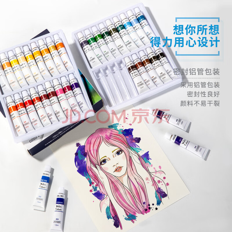 商品相册:得力(deli)水彩颜料36色12ml大容量画画美术专用便携专业级学生儿童绘画彩绘套装便携73900第