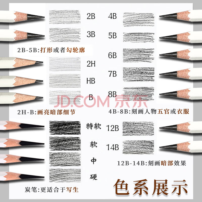 商品相册:青竹画材(CHINJOO)2B专业绘画铅笔12支/盒素描速写铅笔绘画考试考级工具初学者美术绘图学生铅笔美术写生第