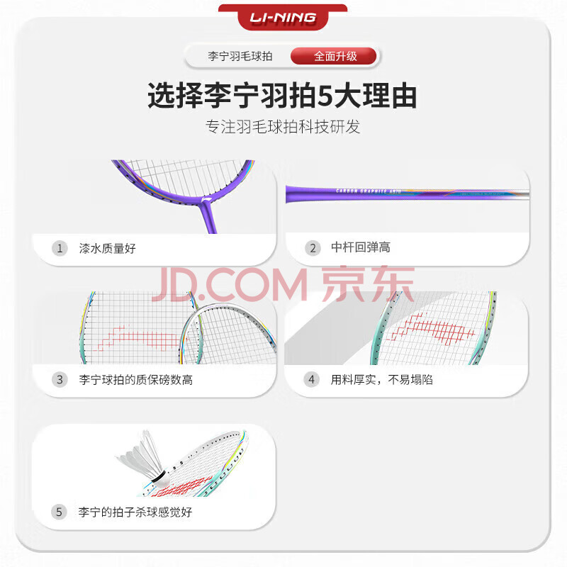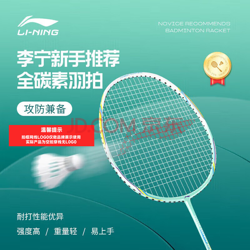 商品相册:李宁(LI-NING)羽毛球拍全碳素单拍全碳纤维超轻羽毛拍4U进攻型青色第