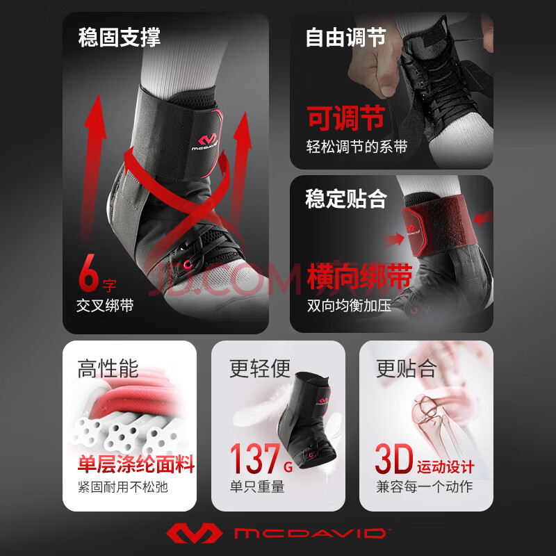 商品相册:迈克达威(McDavid)195护踝扭伤脚踝预防崴脚内翻外翻男女专业运动健身护具 黑色 M码第